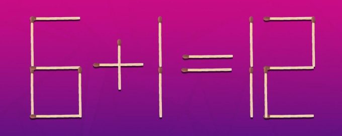 Az alábbiakban tehát egy kollázst láthattok, ahol a 6+1=12 egyenlőséget gyufák segítségével rakjuk ki. Nyilvánvaló, hogy itt hiba van, mert ezeknek a számoknak az összege 7.