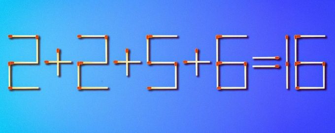 Az alábbiakban egy képet láthatsz, amelyen a gyufák a 2+2+5+6=16 egyenlőséget fektetik le. Nyilvánvalóan hiba van benne, mert ezeknek a számoknak az összegének 15-nek kellene lennie.