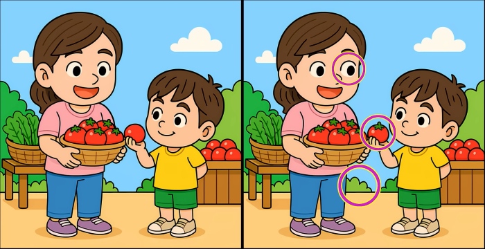 Készen állsz a következő kihívásra? Nézd meg alaposan a két képet, amelyeken egy anya és fia paradicsomot szednek. Első pillantásra ugyanúgy néznek ki, de van 3 apró különbség. Gondolod, hogy mindegyiket megtalálod 45 másodperc alatt? Próbáld ki, és teszteld a látásélességedet!